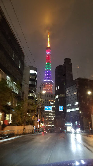 五輪のシンボルカラーでライトアップされたようです。